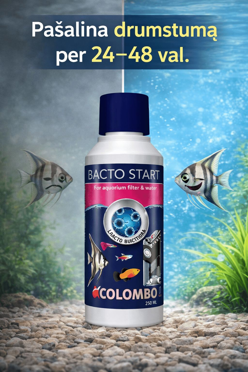 Greitai pašalink drumstumą ir stabilizuok bakterijų balansą. Puikiai tinka naujam akvariumui ir vandens problemoms spręsti.