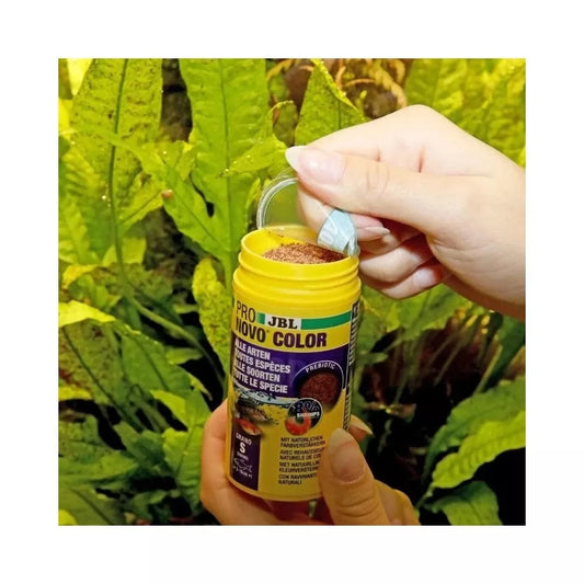 Atraskite visavertį mitybos sprendimą jūsų akvariumo draugams!JBL ProNovo Color Grano S – tai aukščiausios kokybės universalus smulkių granulių pašaras, sukurtas aprūpinti jūsų akvariumo žuvis visomis reikalingomis maistinėmis medžiagomis. Unikali formulė, praturtinta natūraliu astaksantinu iš krilių, ne tik sustiprina žuvų imunitetą, bet ir intensyvina jų spalvas, leisdama grožėtis ryškiais ir gyvybingais...