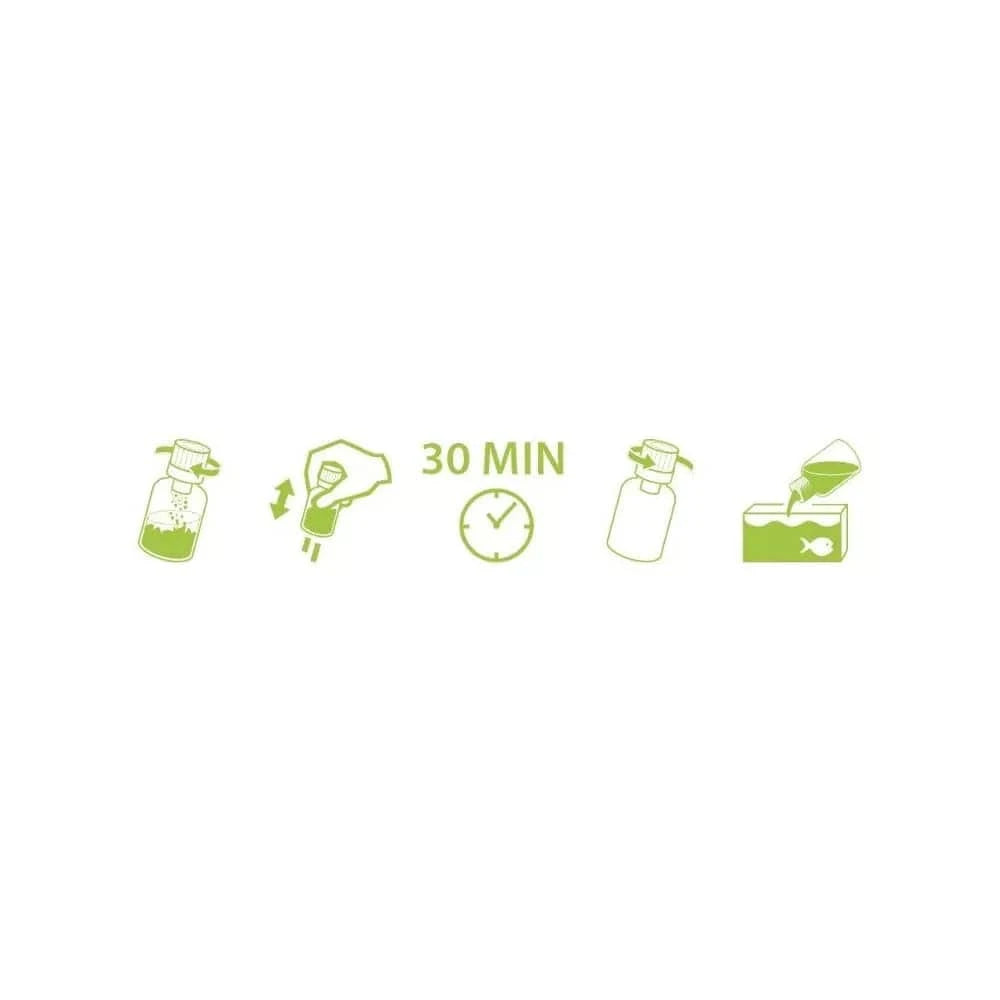 Naudojimas yra itin paprastas. Pasukite kapsulės dangtelį, kol sausas bakterijų ir fermentų mišinys subyrės į maistinį tirpalą. Kruopščiai suplakite ir palikite priemonę kambario temperatūroje maždaug 30 minučių. Per šį laiką bakterijos taps visiškai aktyvios ir paruoštos veikti. Tada paruoštą tirpalą galite supilti tiesiai į akvariumą arba, pageidautina, į filtrą, kur bakterijos pradės efektyviai dirbti. Visa pakuotė skirta akvariumams iki 100 litrų tūrio. Svarbu žinoti, kad net ir nedidelis vandens drumstumas, galintis atsirasti iš karto po priemonės panaudojimo, yra visiškai nekenksmingas ir paprastai išnyksta per parą.