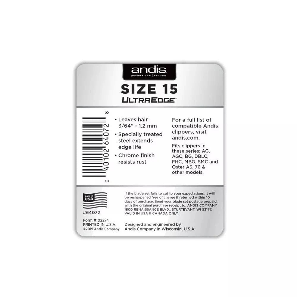 Andis UltraEdge Size 15 peiliukai yra investicija į kokybę ir profesionalų kirpimo patogumą. Jų preciziškumas, ilgaamžiškumas ir puikus suderinamumas daro juos nepakeičiamu įrankiu tiek stilistams, tiek aistringiems namų kirpėjams, siekiantiems geriausių rezultatų. Pasirinkite Andis ir patirkite skirtumą!
