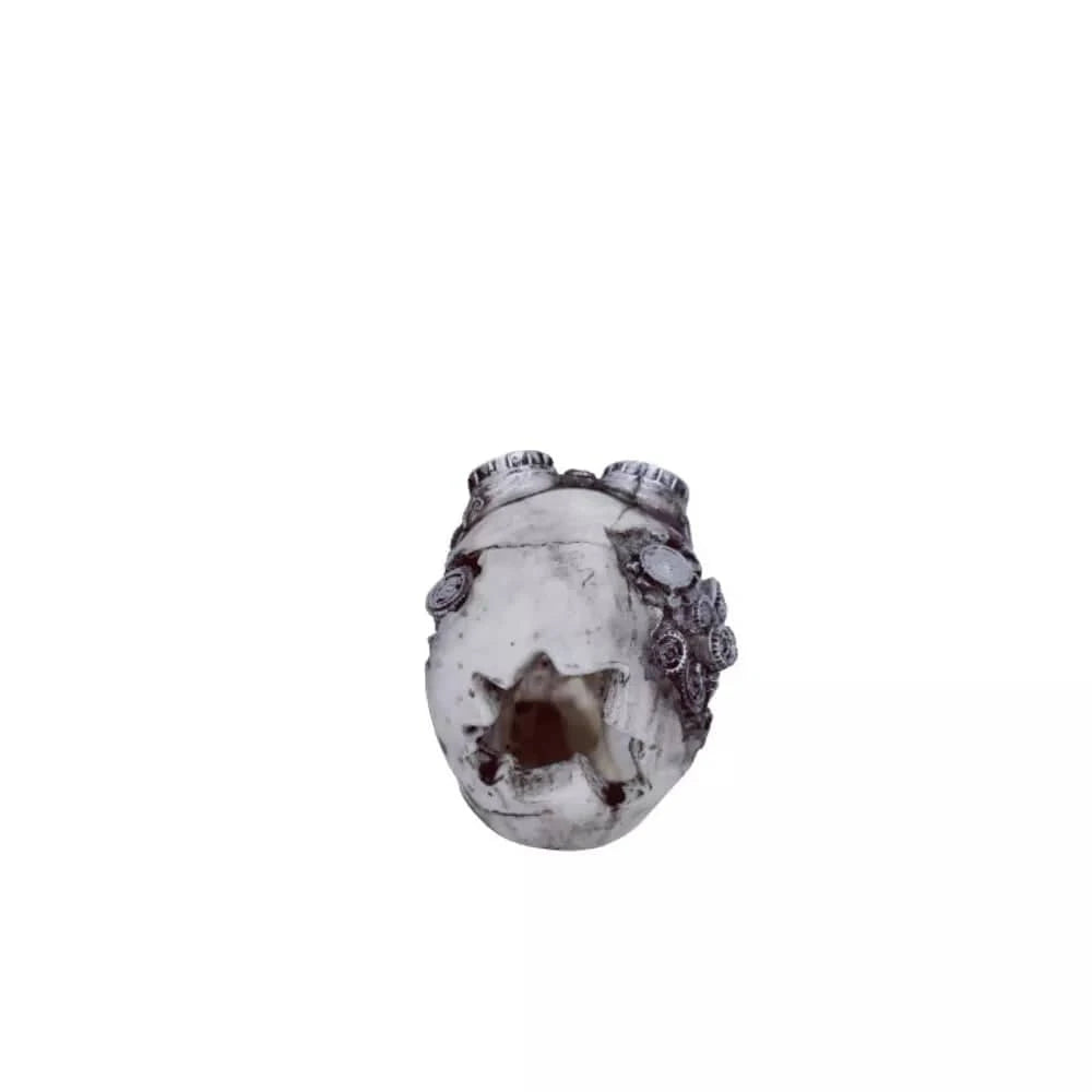 Ši dekoracija yra pagaminta atsižvelgiant į detales, siekiant sukurti autentišką ir įspūdingą vaizdą. Kaukolės formos dizainas suteikia akvariumui savitumo, leidžiančio atitrūkti nuo tradicinių dekoracijų ir sukurti išskirtinę aplinką. Ji puikiai tinka įvairiems akvariumų stiliams – nuo natūralistinių iki labiau fantazijos įkvėptų dizainų. Dekoro stabilumas užtikrinamas tvirto pagrindo, todėl nereikės nerimauti, kad jis apvirs ar pajudės. Tai ne tik estetinis elementas, bet ir funkcionalus sprendimas – dekoracija gali būti naudojama paslėpti nepageidaujamus akvariumo įrenginius ar vamzdelius, taip gerinant bendrą estetinį vaizdą. Jos matmenys (ilgis 13 cm, plotis 9 cm, aukštis 12 cm) idealiai tinka daugumai vidutinio dydžio akvariumų.