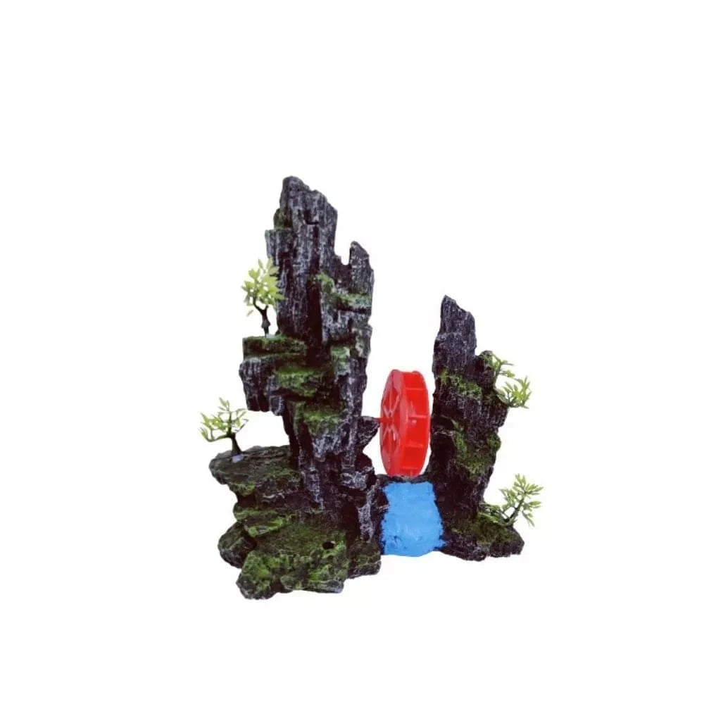 Ši dekoracija kruopščiai sukurta taip, kad imituotų tikrą akmeninę uolą, suteikdama akvariumui gyvumo ir glaudaus ryšio su gamta pojūtį. Jos tekstūra ir reljefas suteikia ne tik estetinio malonumo, bet ir yra svarbūs jūsų žuvyčių gerovei. Uolos ertmės ir nišos tampa puikiomis vietomis žuvims ilsėtis, slėptis nuo stipresnių kaimynų ar tiesiog jaustis saugiau. Tai ypač svarbu neršiančioms ar mažesnėms žuvų rūšims, kurios ieško saugios erdvės. Dekoracija tvirtai stovi akvariumo dugne dėl savo stabiliai suprojektuoto pagrindo, tad galite būti ramūs – ji neišvirs ir nesukels nepatogumų.