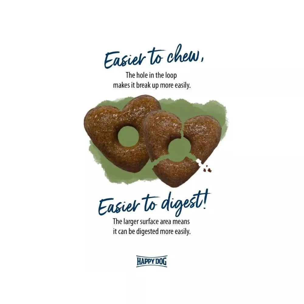 Kodėl širdies formos granulės viduryje yra skylė? Specialios maisto granulės formos dėka, jis greičiau suyra. Tokią granulę ypač lengva kramtyti ir ji geriau virškinama. Didesnis paviršiaus plotas skrandyje leidžia granulę optimaliai suskaidyti (virškinimo sultims).