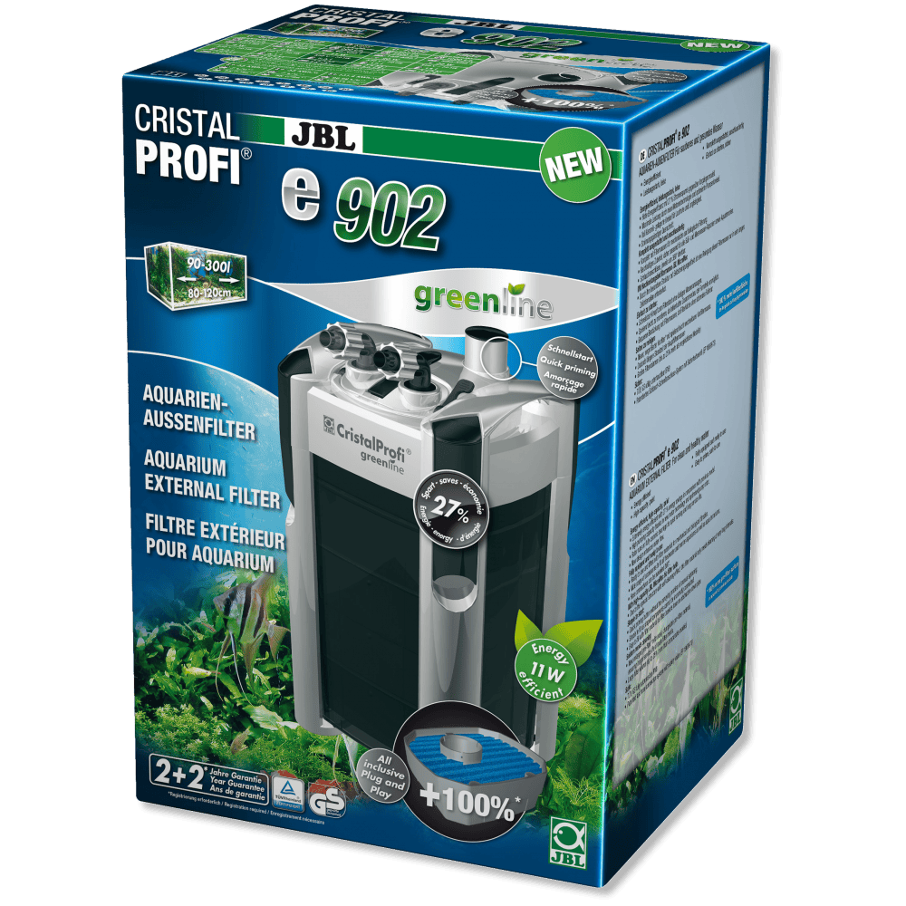 JBL CristalProfi e902 Greenline – tai naujos kartos išorinis filtras, sukurtas užtikrinti maksimalų vandens švarumą ir stabilų biologinį balansą. Idealiai tinka 90–300 litrų akvariumams.