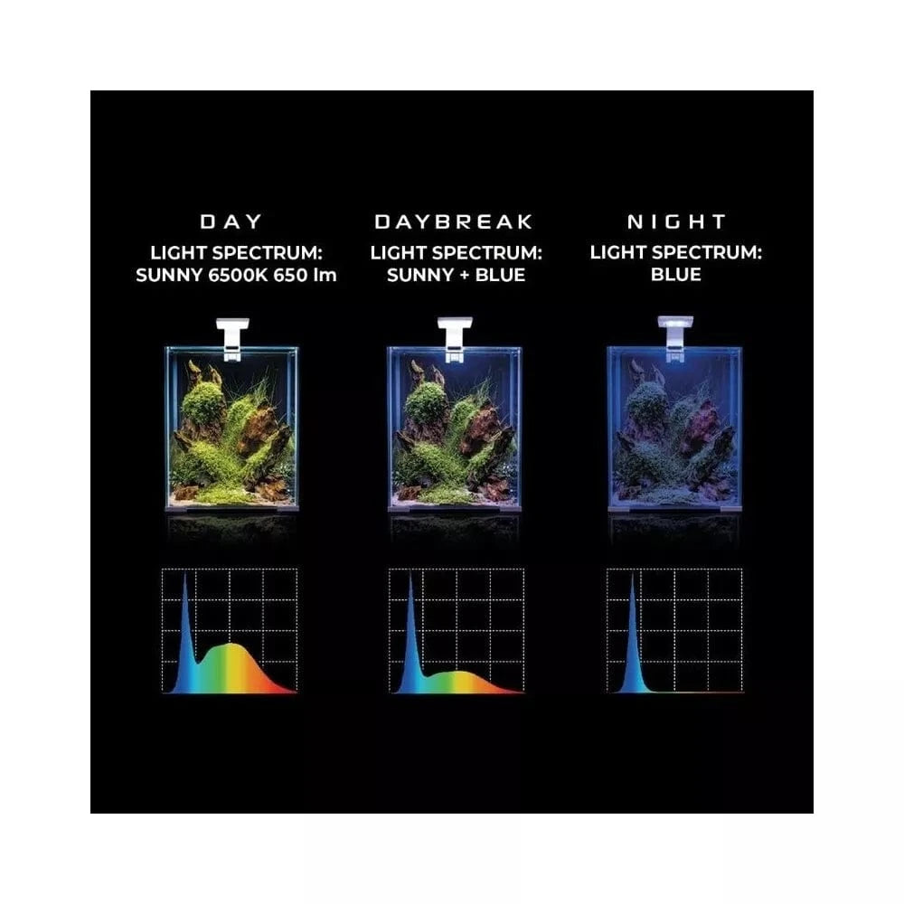 Pasinerkite i akvariumininkyst e meno pasaul su "Leddy Smart Sunny Day & Night" LED lempa. Sukurtas i minimalistinio ir futuristinio dizaino, šis kompaktiškas apšvietimas yra tobulo sprendimo mažiem akvariumams ir nano pasauliams. Daugiau nebereikės rinktis tarp funkcionalumo ir estetikos – šviesos diodų technologija užtikrina ne tik puikų augalų augimą, bet ir sukuria nuostabią atmosferą bet kuriuo paros metu. Leiskite savo povandeniniam pasauliui atgyti su nepakartojama šviesa.