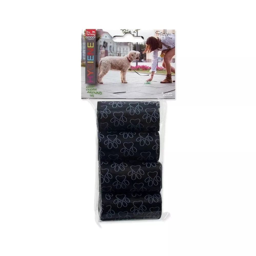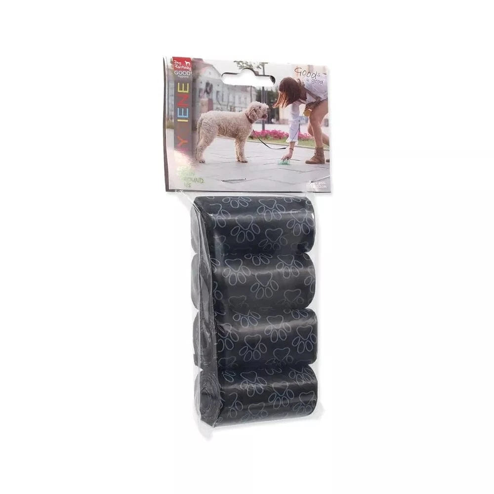 Pakuotėje yra 4 ritinėliai juodos spalvos maišelių (1 ritinėlyje - 20 maišelių).
