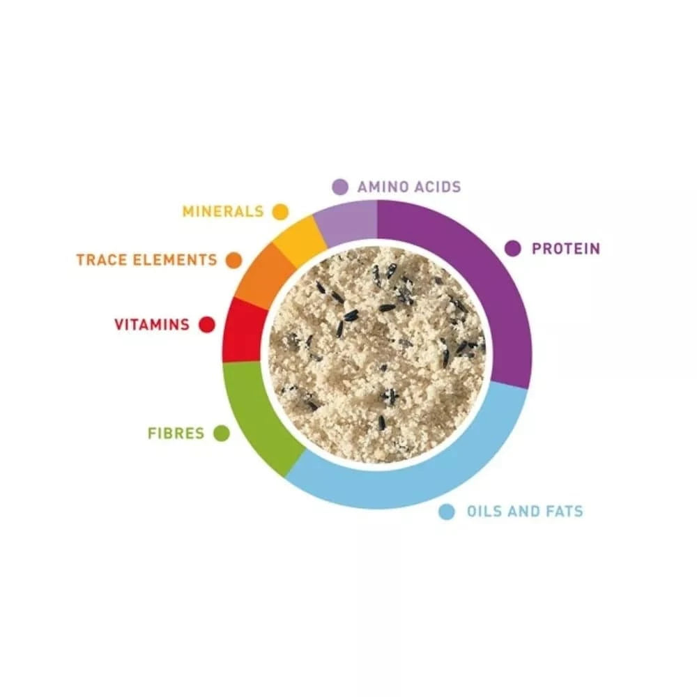 Šėrimo rekomendacijos: Sumaišykite šį lesalą su kasdieniu paukščio maistu arba siūlykite atskirai pagal jo poreikius. Visada užtikrinkite šviežio vandens prieinamumą.