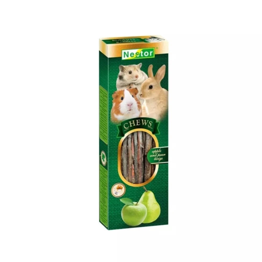 Nestor skanėstai – tai 100% natūralus pasirinkimas jūsų graužikui ar triušiui, pristatantis skanų ir naudingą maistą tiesiai iš gamtos. Šis unikalus produktas, sudarytas iš kruopščiai atrinktų obelų ir kriaušių šakelių, yra ne tik gardus kąsnis, bet ir esminė jūsų augintinio sveikatos bei gerovės dalis. Jo dėka galėsite džiaugtis sveikesniu ir laimingesniu augintiniu, kuris aktyviai tvarkysis su natūraliais savo organizmo poreikiais.