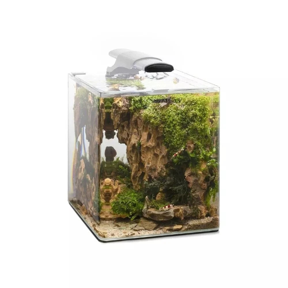 OptiBent Set 30 – tai ne tik akvariumas, bet ir modernus dizaino elementas jūsų namams, sukurtas džiuginti akį ir palengvinti priežiūrą. Šis stačiakampis, baltos spalvos 29x29x35 cm akvariumas, talpinantis 29 litrus vandens, pasižymi unikaliais užapvalintais priekiniais kampais. Dėl aukščiausios kokybės itin skaidraus „Opti“ stiklo ir novatoriškos konstrukcijos, kuri beveik nepalieka matomų silikoninių sujungimų, galėsite mėgautis nuostabiu vaizdu į akvariumo gyventojus iš visų pusių. Tai suteikia išskirtinį vizualinį efektą, leidžiantį visiškai pasinerti į savo sukurtą povandeninį pasaulį.
