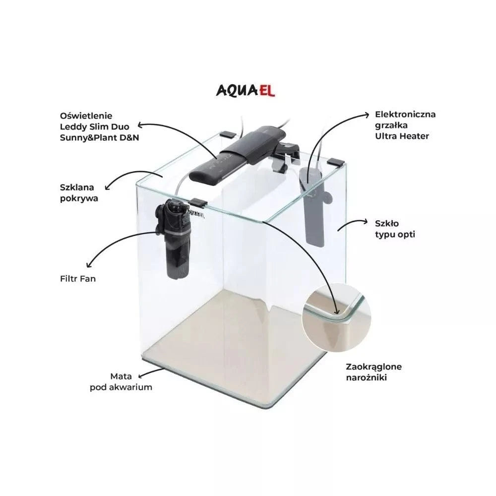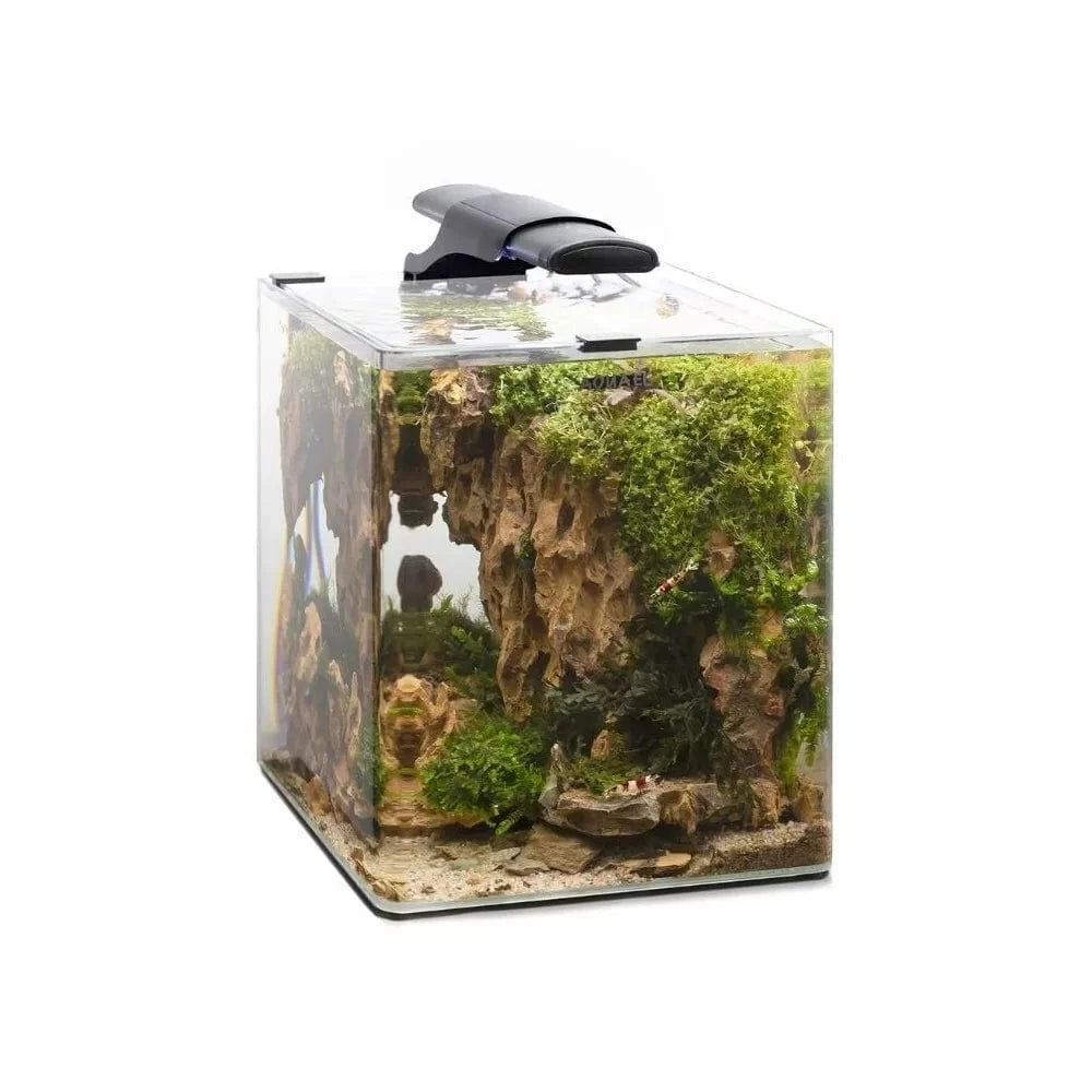 OptiBent Set 30 išsiskiria ne tik estetika, bet ir aukščiausia kokybe. Vietoj įprastų silikoninių sujungimų, akvariumas yra pagamintas naudojant pažangias technologijas, kurios užtikrina ilgaamžiškumą ir estetišką vaizdą. Su 29x29x35 cm matmenimis ir 29 litrų talpa, šis stačiakampis juodos spalvos akvariumas puikiai tiks tiek pradedantiesiems, tiek patyrusiems akvariumistams, norintiems sukurti jaukų ir gyvybingą buveinę mažesniems žuvelių ar krevečių šeimynoms.