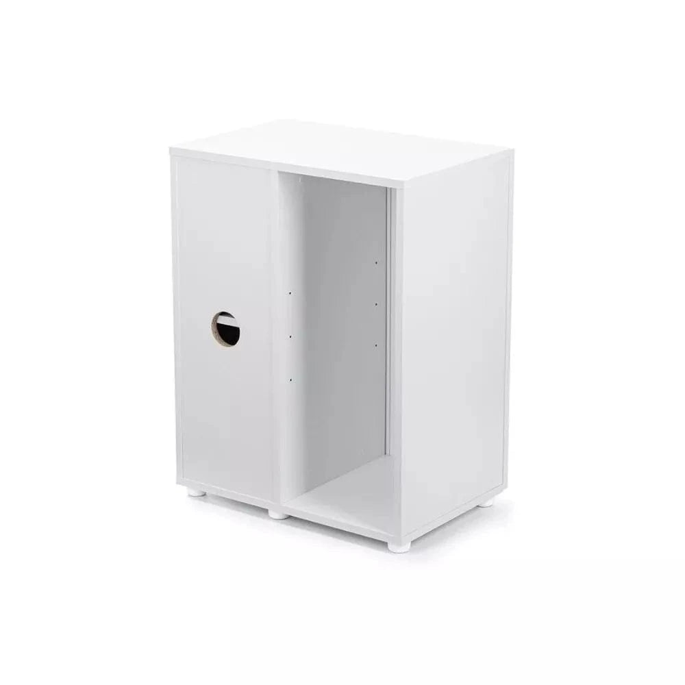 "Opti Set 130" spintelė išsiskiria savo modernia išvaizda ir kruopščiu apdirbimu. Durelės, susiliejančios su bendru korpusu, sukuria vientiso baldo įspūdį, o visiškai paslėptos rankenėlės pabrėžia minimalistinį dizainą. Ši savybė leidžia spintelei lengvai derėti prie bet kokio interjero stiliaus, nuo klasikinio iki modernaus. Elegantiškas, baltos spalvos dizainas suteikia erdvės ir šviesos pojūtį patalpoje, o paspaudus durelių plokštumą, jos atsidaro itin patogiai ir švelniai.