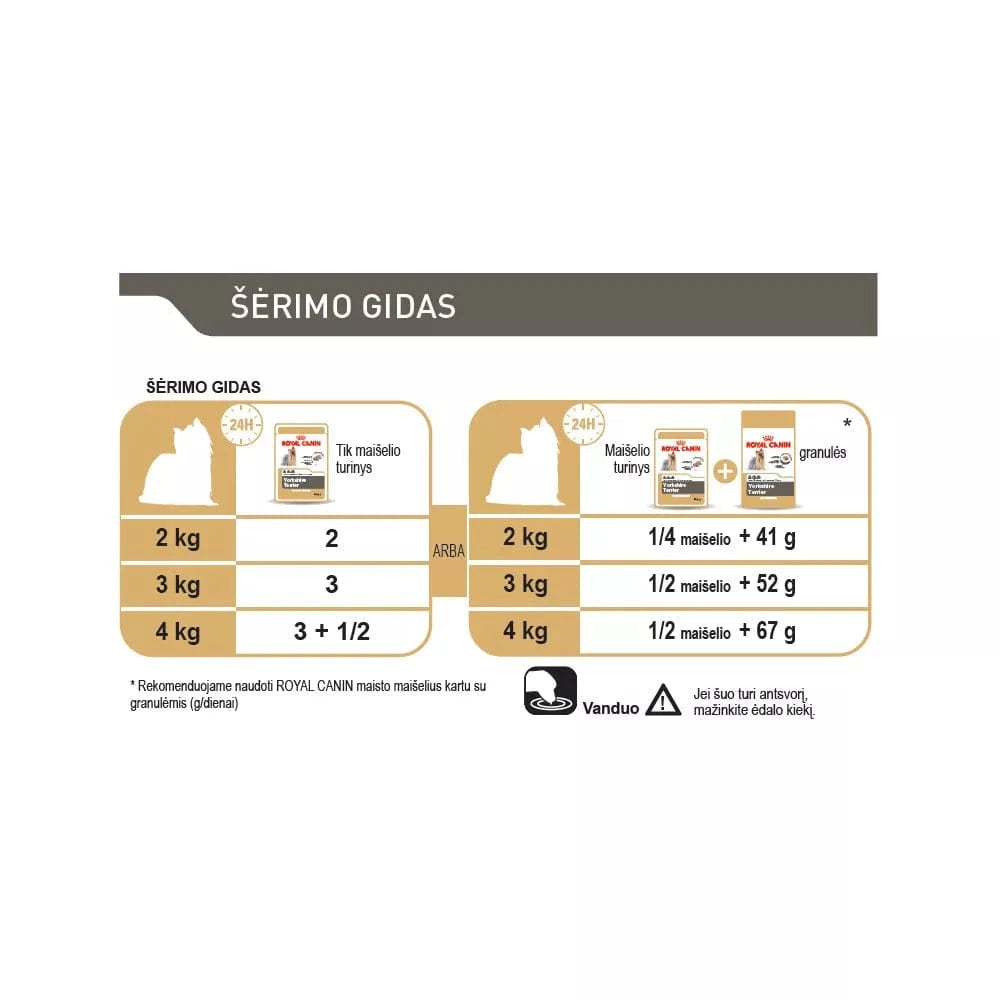 Royal Canin „Breed Health Nutrition“ (BHN) koncepcija grindžiama naujausiais moksliniais tyrimais ir siekia patenkinti kiekvienos veislės unikalius poreikius. Tai reiškia, kad kiekvieno produkto formulė yra kruopščiai kuriama, atsižvelgiant į specifinius skirtingų veislių šunų fiziologinius, mitybinius ir elgesio ypatumus. Siekiant užtikrinti aukščiausią mitybos kokybę, naudojami tik kruopščiai atrinkti baltymų šaltiniai, unikalūs ingredientai ir užtikrinamas nepakartojamas skonis. Net konservuoto maisto tekstūra ir sudėtis pritaikytos veislės poreikiams, užtikrinant visapusišką naudą jūsų Jorkšyro terjerui.