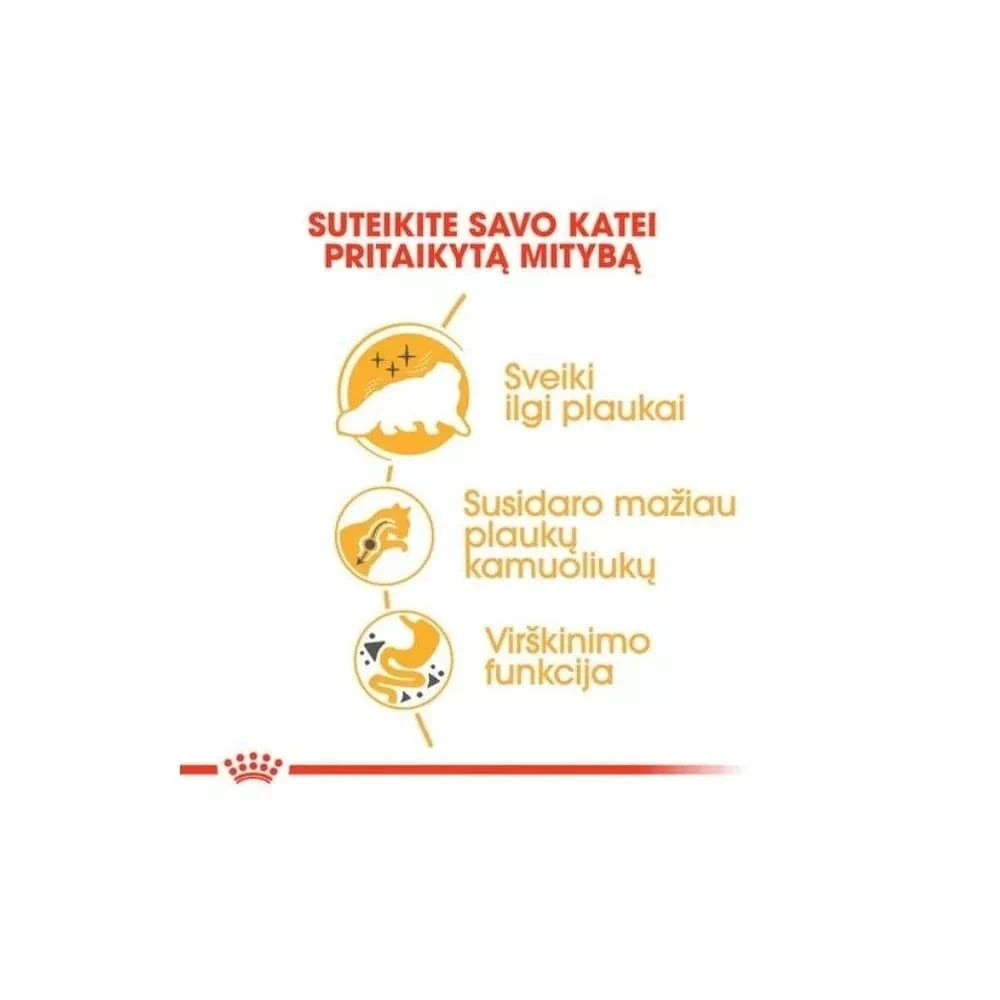 Persų katės garsėja savo įspūdingu, ilgu ir švelniu kailiu, kuriam reikia ypatingos priežiūros ne tik išoriškai, bet ir mitybiškai. Šis Royal Canin maistas praturtintas specialiu maistinių medžiagų kompleksu, įskaitant Omega-3 ir Omega-6 riebalų rūgštis. Šios gyvybiškai svarbios medžiagos padeda stiprinti odos apsauginį barjerą, palaikyti jos drėgmės balansą ir skatinti sveiką plaukų augimą. Rezultatas – stipresnis, blizgesnis ir mažiau besišeriantis kailis, atspindintis Jūsų katės sveikatą ir grožį iš vidaus.
