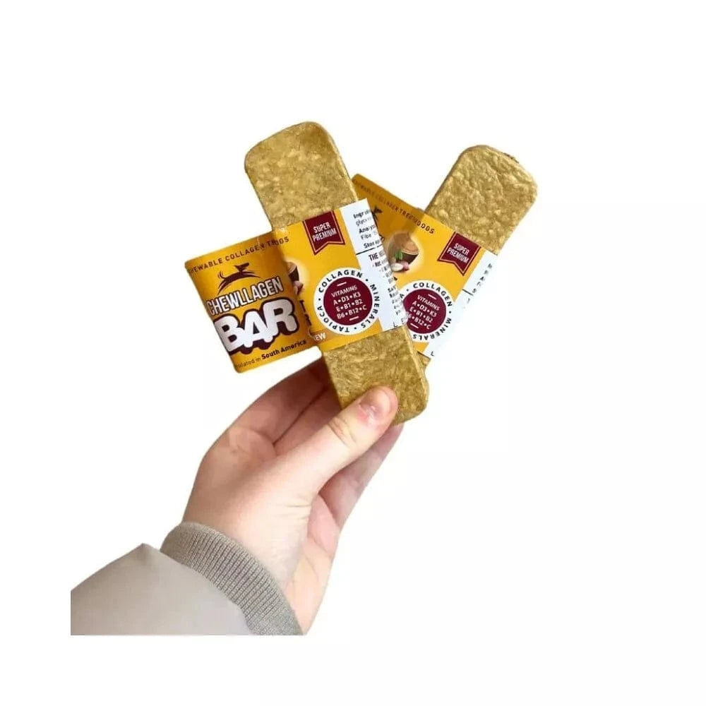 Pristatome CHEWLLAGEN BAR – inovatyvų, kietą skanėstą, sukurtą specialiai siekiant palaikyti Jūsų šuns sąnarių sveikatą, skatinti judrumą ir gerinti bendrą savijautą. Šis unikalus pagaliukas praturtintas aukščiausios kokybės hidrolizuotu kolagenu, kuris yra nepakeičiamas jungiamojo audinio, ypač kremzlių, kaulų, odos ir plaukų, stiprinimui. Dėl riešutų sviesto skonio ir patrauklios tekstūros, tai ne tik naudingas, bet ir labai mėgstamas Jūsų augintinio užkandis.