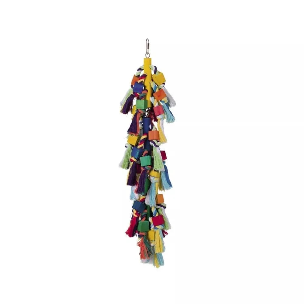 Šis žaislas sukurtas atsižvelgiant į paukščių poreikius judėti ir tyrinėti aplinką. Natūralaus medžio tekstūros ir įvairios formos detalės suteikia paukščiams galimybę ne tik ilgėliau išlikti užimtiems, bet ir lavinti savo fizinius įgūdžius. Medžio kramtymas yra natūralus instinktas daugeliui paukščių, padedantis palaikyti snapo sveikatą ir tinkamą ilgį. Ilgis 50 cm leidžia žaislą patogiai pritvirtinti narvelyje, suteikiant pakankamai erdvės laipiojimui ir žaidimams.