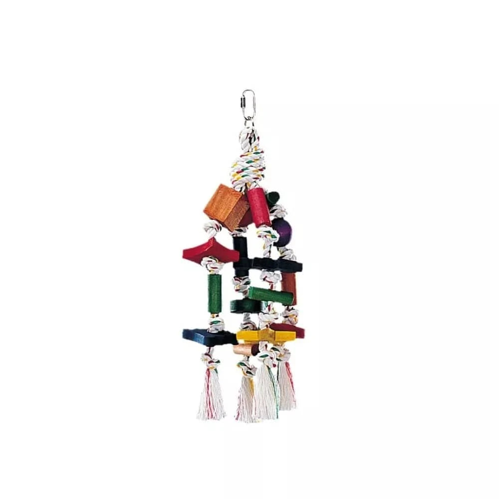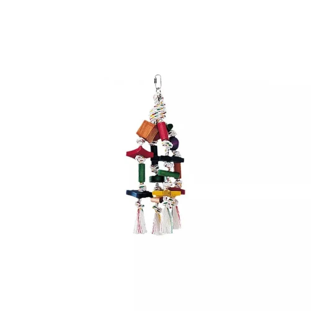Šis ilgas, 30 cm siekiantis žaislas skatina paukščius judėti, šokinėti ir manevruoti, taip palaikydamas jų fizinį aktyvumą. Tai ypač svarbu didesniems paukščiams, linkusiems į sėslesnį gyvenimo būdą narvelyje. Virvės ir blokelių derinys suteikia daugybę galimybių žaidimui: kabinimasis, virvės čiulpimas, blokelių apžiojimas. Tokia veikla ne tik stiprina raumenis, bet ir teikia psichologinę stimuliaciją, kuri yra būtina protingiems egzotiniams paukščiams. Tai padeda sumažinti stresą, nerimą ir gerina bendrą nuotaiką.