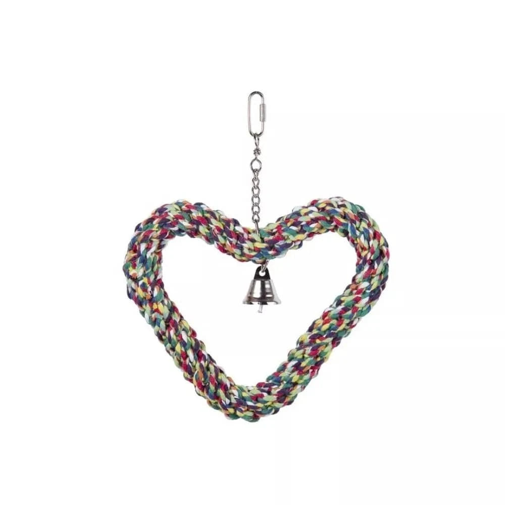 Širdelės formos dizainas suteikia žaislui vizualinio patrauklumo, o natūrali virvės tekstūra yra maloni paukščio pėdoms ir snapui. Mūsų prioritetas yra jūsų augintinio saugumas, todėl šis žaislas pagamintas iš tvirtų, netoksiškų medžiagų, kurios atlaikytų net ir aktyviausių paukščių naudojimą. Metalinis karabinas užtikrina patikimą tvirtinimą, kad žaislas nenukristų ir nesukeltų pavojaus. Nors šis žaislas skirtas paukščiams, jis nėra tinkamas vaikams dėl smulkių detalių ir karabino mechanizmo.