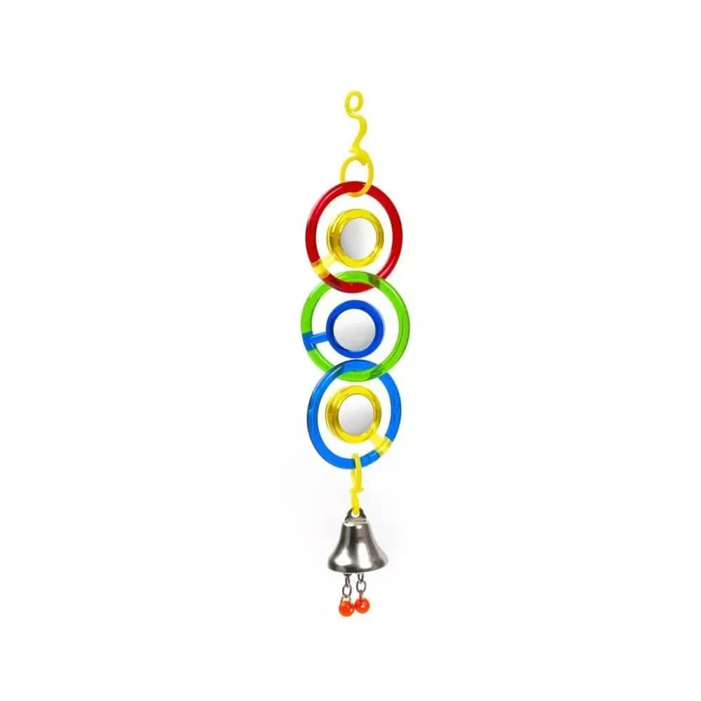Narvelio aplinka gali tapti monotoniška, jei nėra tinkamų žaislų, kurie skatintų fizinį ir protinį aktyvumą. Šis žaislas, sukurtas kaip spalvingų žiedų ir interaktyvių elementų derinys, skirtas būtent tam. Jo dizainas atitinka paukščių poreikius tyrinėti ir manipuliuoti daiktais. Veidrodėliai suteikia galimybę stebėti atspindžius, o skambantis varpelis reaguoja į kiekvieną judesį, suteikdamas malonių garsų. Dėl savo konstrukcijos jis skatina paukštį judėti, temptis ir pasiekti skirtingas jo dalis, taip stiprinant raumenis ir koordinaciją. Tai nėra tik papuošimas narvelyje, o aktyvus įrankis, padedantis palaikyti Jūsų paukščio gerą savijautą ir psichologinę būklę, užkertant kelią destruktyviam elgesiui, atsirandančiam dėl nuobodulio.