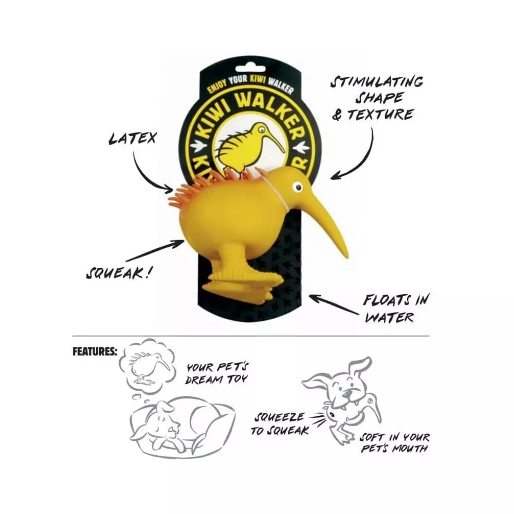 Kiwi Walker lateksiniai žaislai yra patvarūs, tačiau lengvai valomi. Suspaudus jie cypia. Tai leis jūsų šuniui ar šuniukui linksmintis ištisas valandas ir padės kuo mažiau kramtyti jūsų baldus ar mėgstamą batų porą.